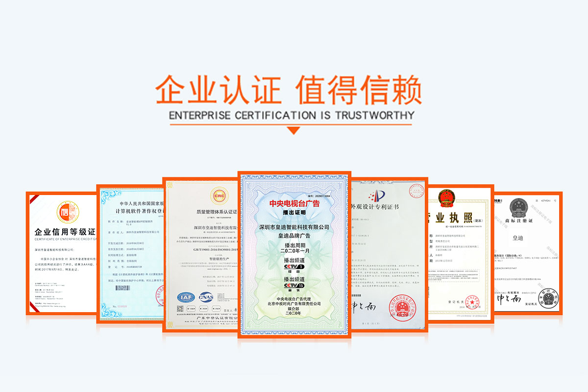 深圳市皇迪智能科技有限公司,是一家集產品研發、制造、銷售、安裝、售后于一體的全產業鏈公司,我司專注于酒店刷卡鎖、公寓藍牙密碼鎖、電子鎖、密碼鎖研發,生產,銷售.是國家高新技術企業,公司已通過ISO9001/2015標準認證,并擁有多項國家實用新型專利、外觀專利及計算機軟件著作權; 皇迪玻璃門鎖廠家一直秉承“以顧客為中心,以人為本,長期艱苦奮斗”的經營理念,為全球每一位消費者提供舒適,便捷,安全的高品質生活。